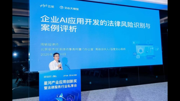 图四:2025年11月,由百度飞桨(厦门)人工智能产业赋能中心主办的“星河产业应用创新奖暨法律服务行业私享会”在厦门举行。应百度邀请,以“企业AI应用开发的法律风险识别与案例评析”为主题做会议发言,与参会企业共同探讨AI合规。